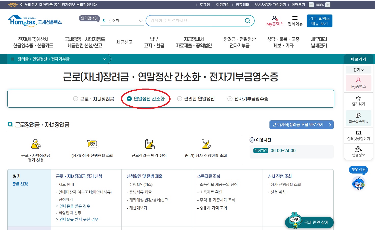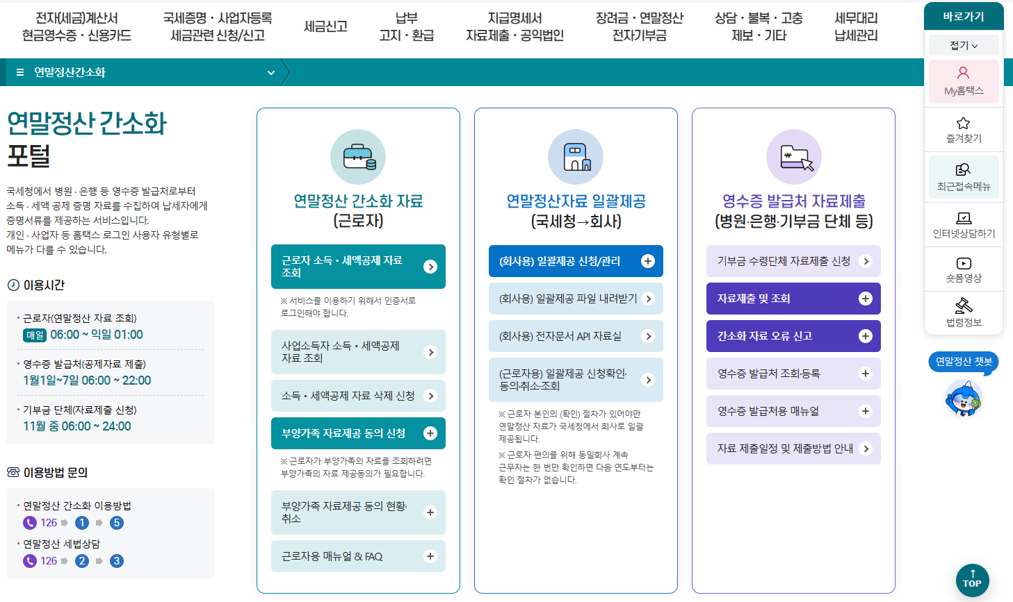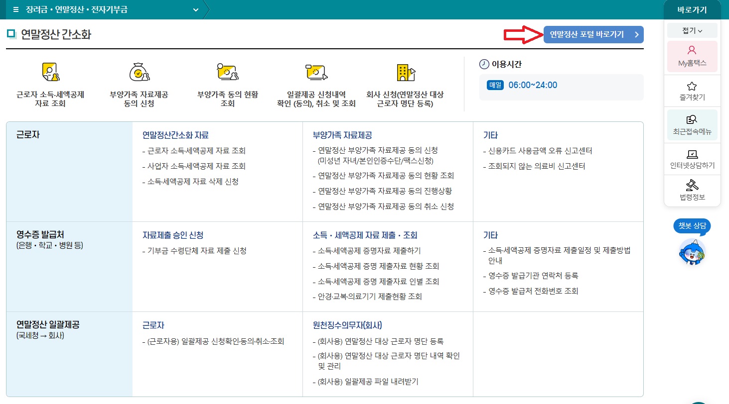 클릭을 하게 되면 연말정산 포털 바로가기를 할 수 있습니다.